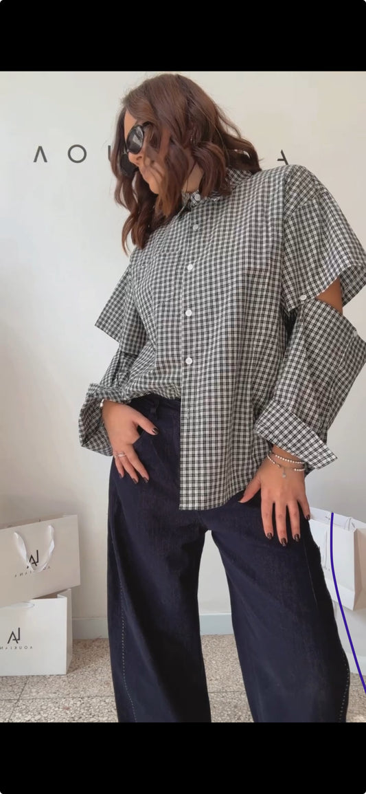 Shirt with Elbow Cutout in Black & White