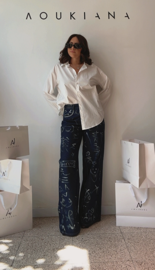 Wide-Leg Jeans with Line Drawings