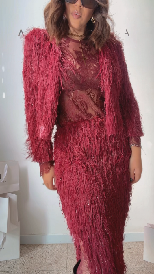 Feather-Fringe Set in Bordeaux