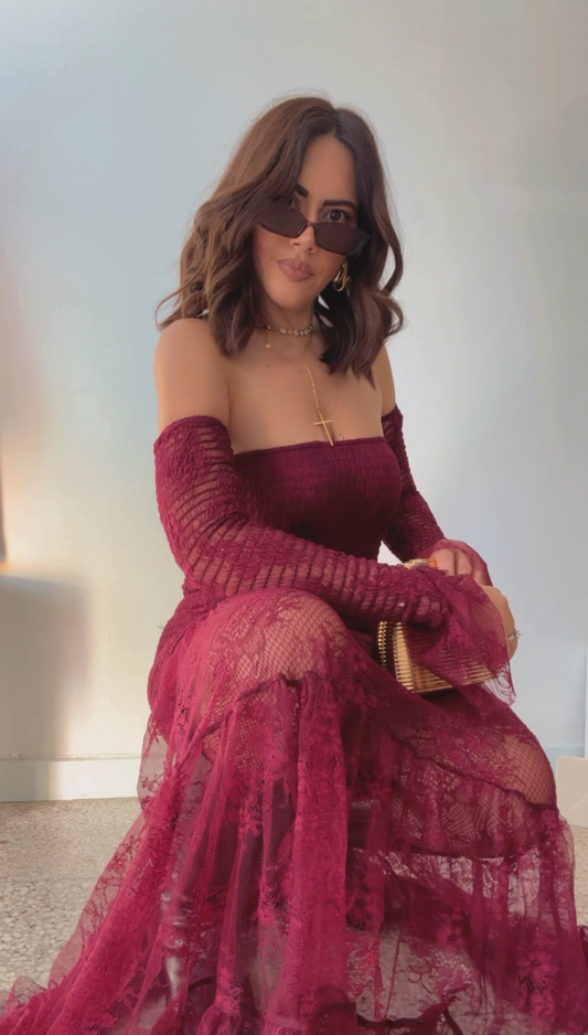 Maxi Lace Dress in Bordeaux