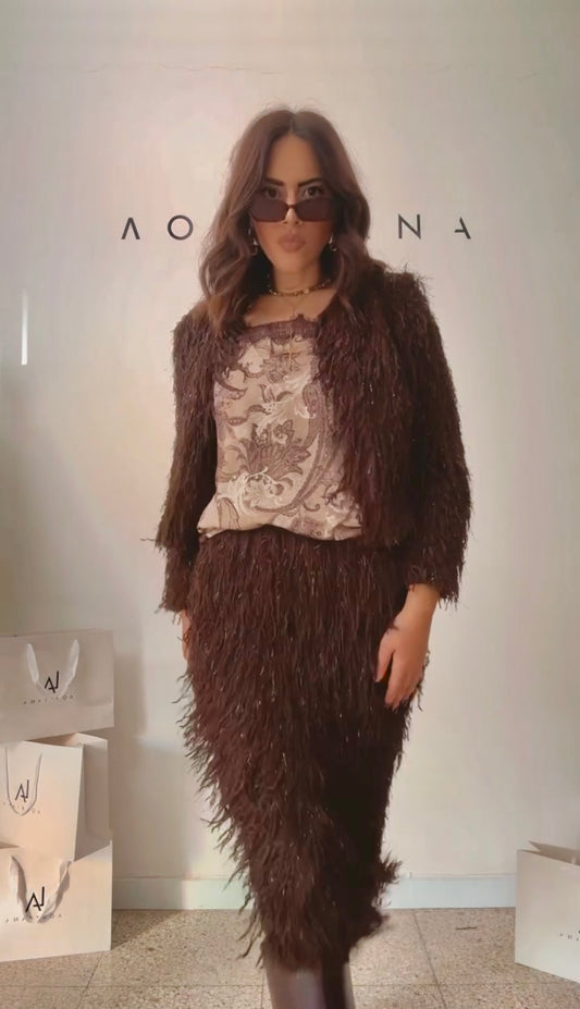 Feather-Fringe Set in Brown