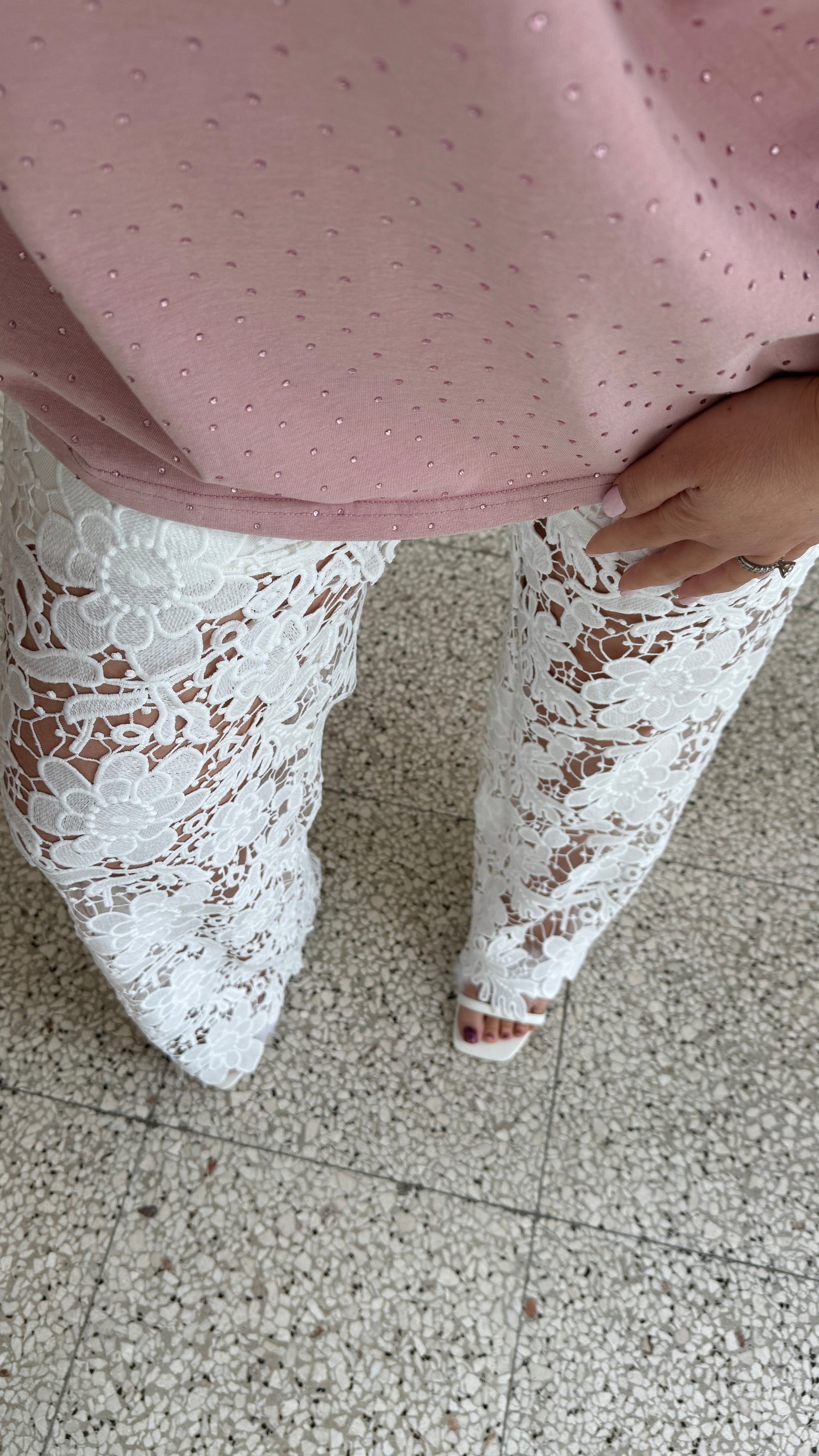 Lace Jeans in White