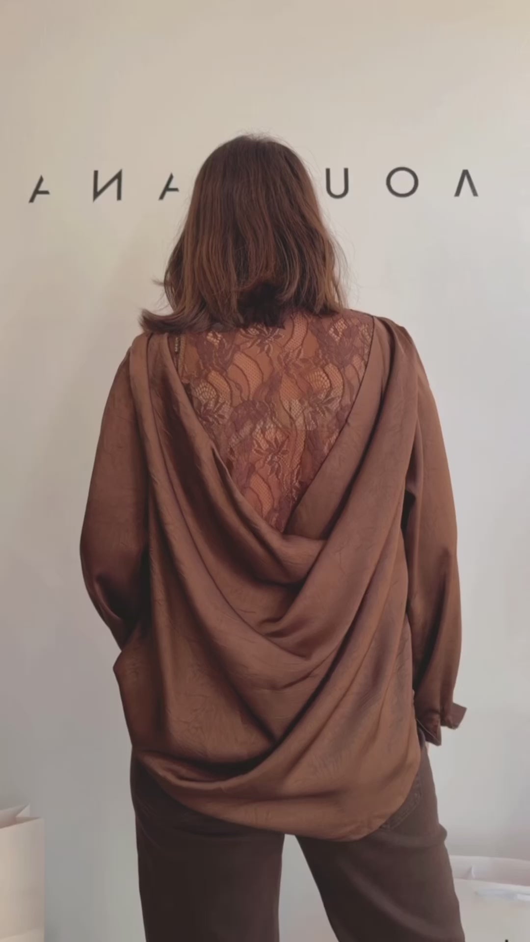 Shirt with Lace Back in Brown